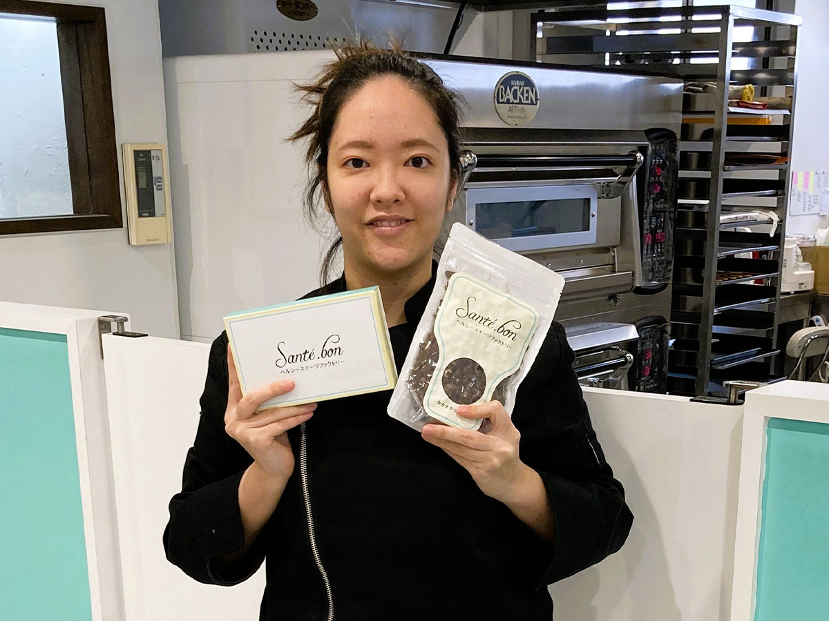 ![]()  ヘルシースイーツファクトリー SANTÉBON勤務・経営大工園ジェイドさん栄養士科2020年度卒・健康スイーツ研究科2021年度卒 米粉パンなど幅広く応用を学べ無糖(砂糖フリー)の菓子作りに活かしてします!口腔内の健康・糖尿病やAGEsの問題に関心を持ち無糖(砂糖を使用しない)の菓子の開発を志し、栄養士科を修了し健康スイーツ研究科に再進学しました。